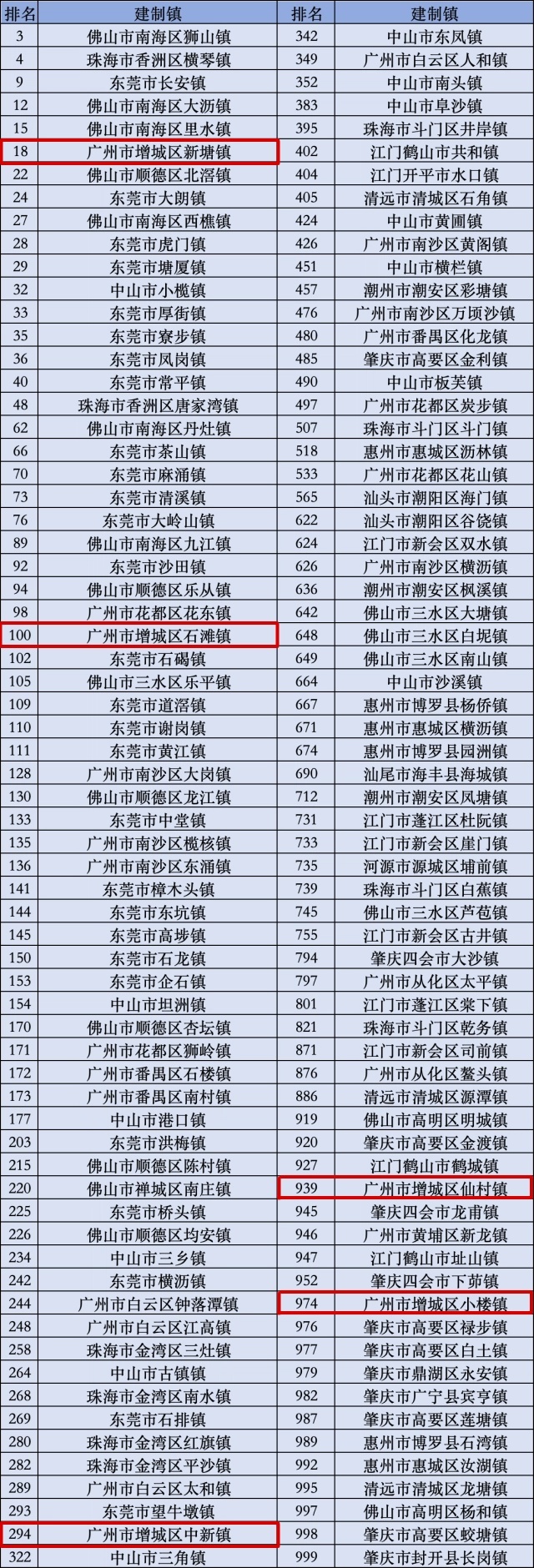 其中,增城区5个镇上榜!